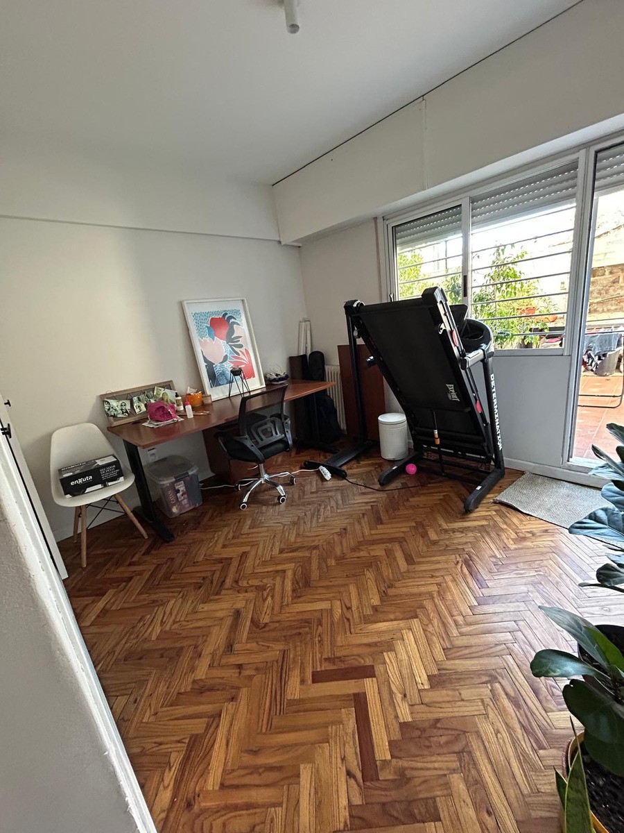 El apartamento cuenta con tres dormitorios, uno de los cuales está actualmente integrado a la cocina, pero puede cerrarse fácilmente si se desea. Además, dispone de dos baños, uno completo y otro social, ambos renovados en 2022. La cocina ha sido reciclada en su totalidad el mismo año y cuenta con amplios placares, alacena, mueble lavadero y salida directa al patio lavadero. La instalación de lavarropa y caldereta a gas añade funcionalidad al espacio. Aunque no cuenta con garaje propio, se alquila una cochera en el edificio por $4,500 al mes.