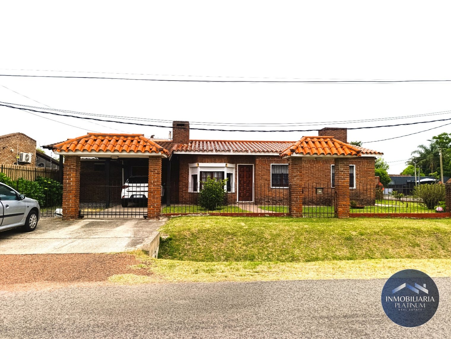-Amplio frente con mucho verde, lugar para varios autos y portón de acceso independiente desde la calle